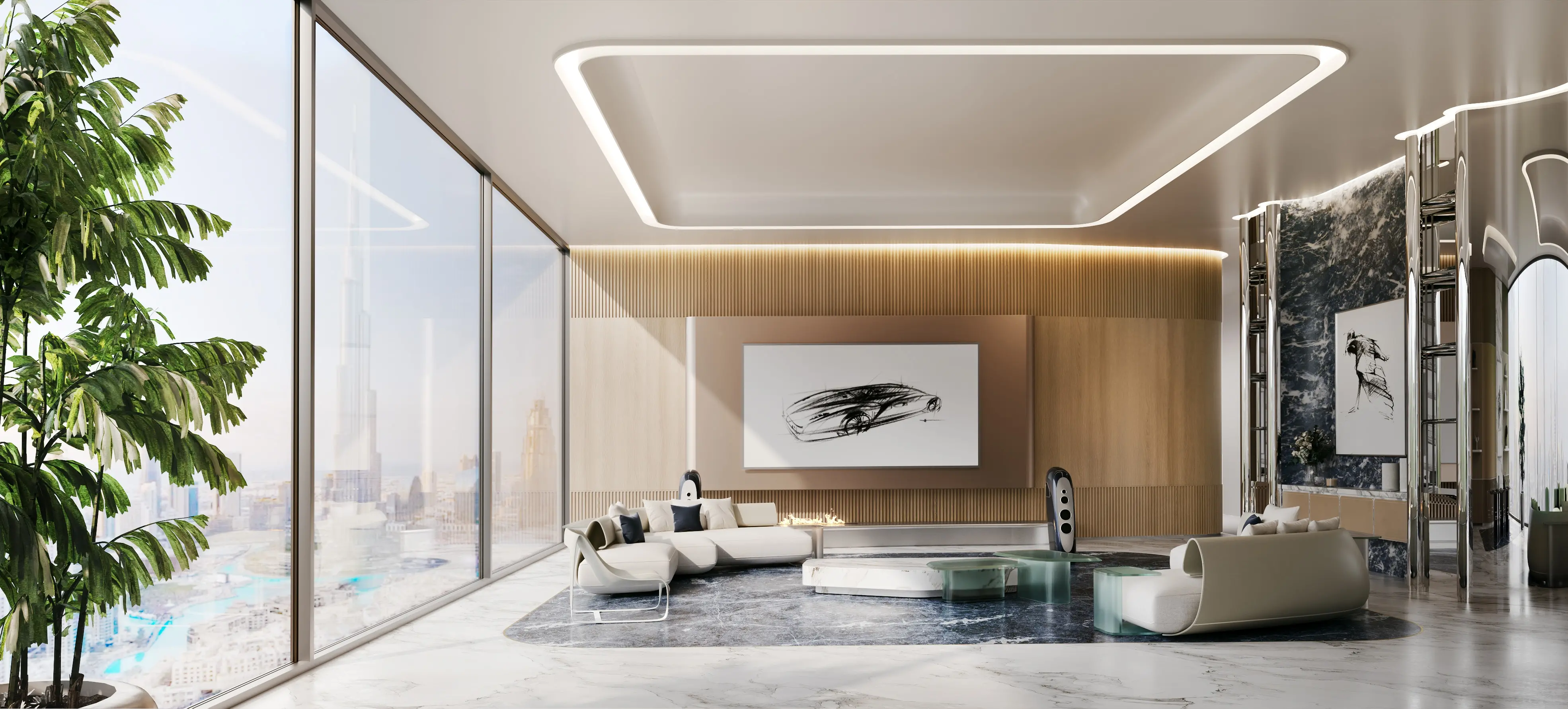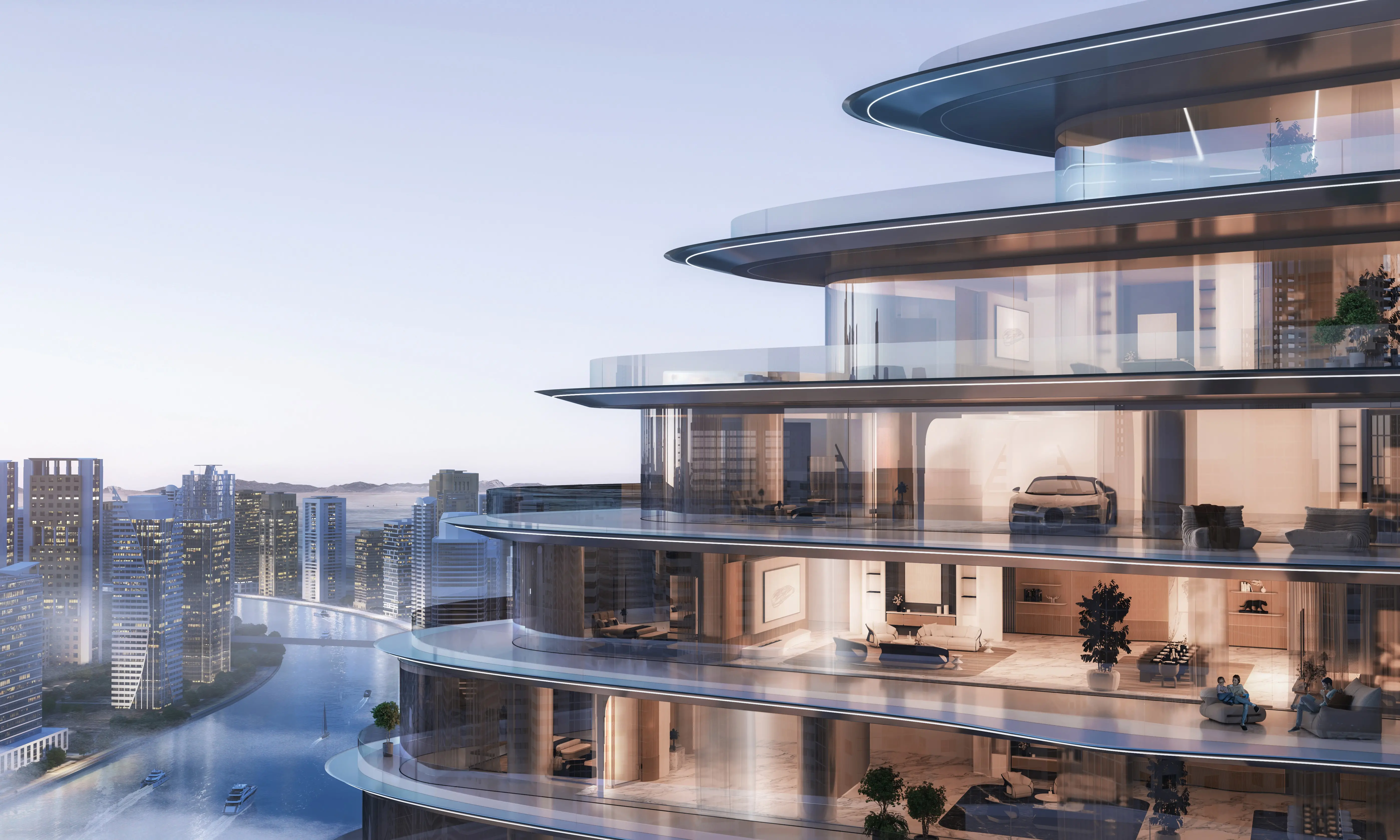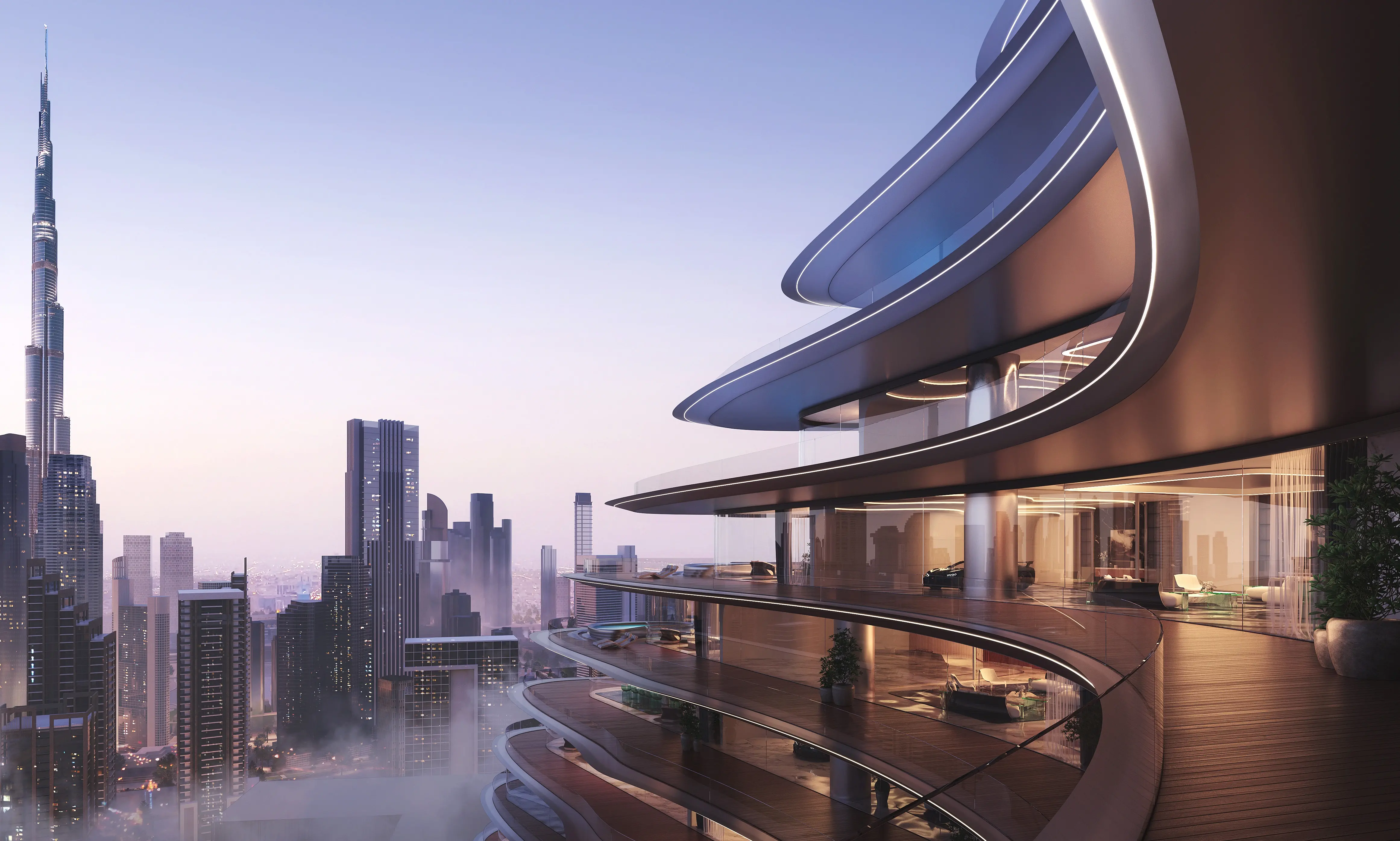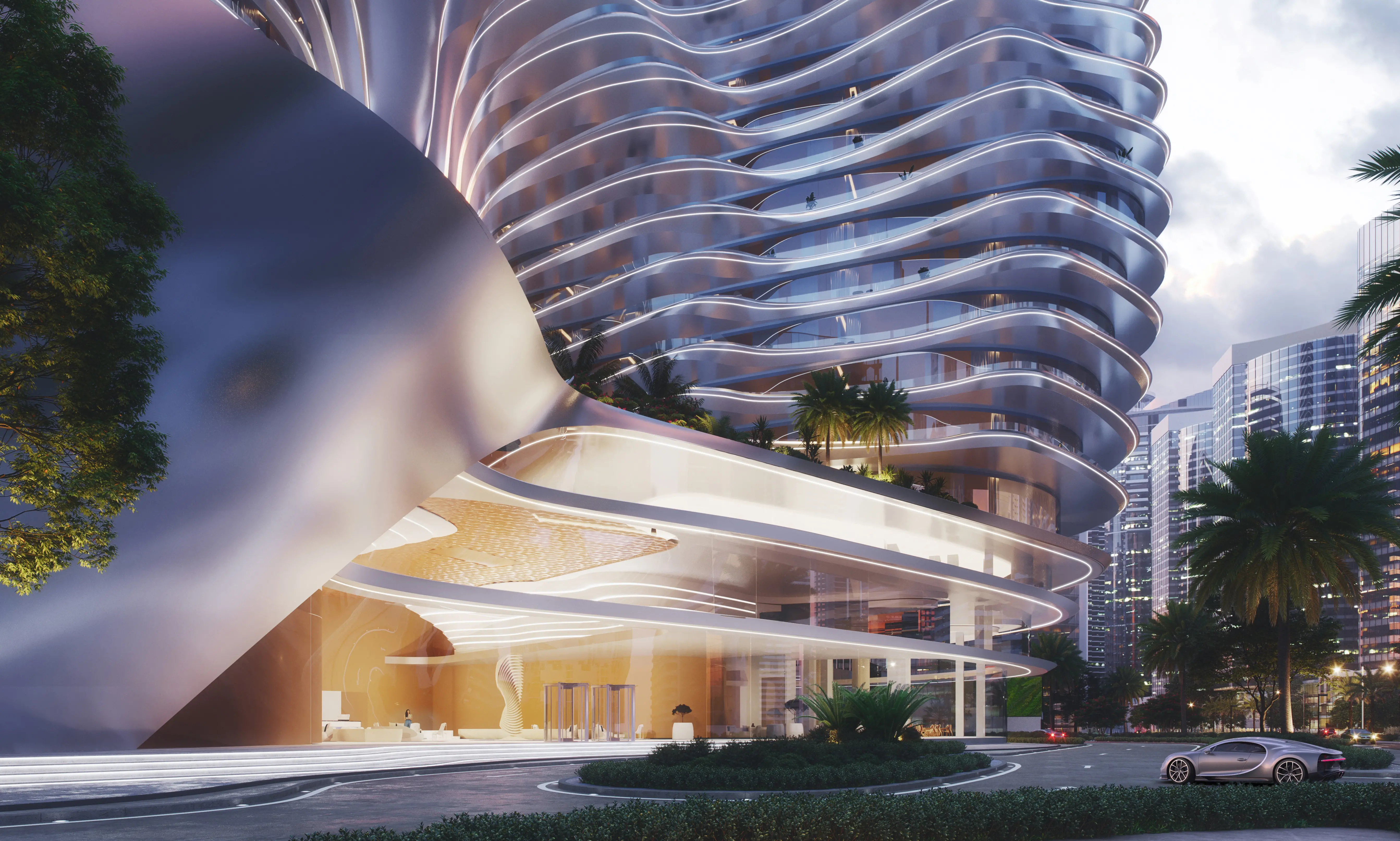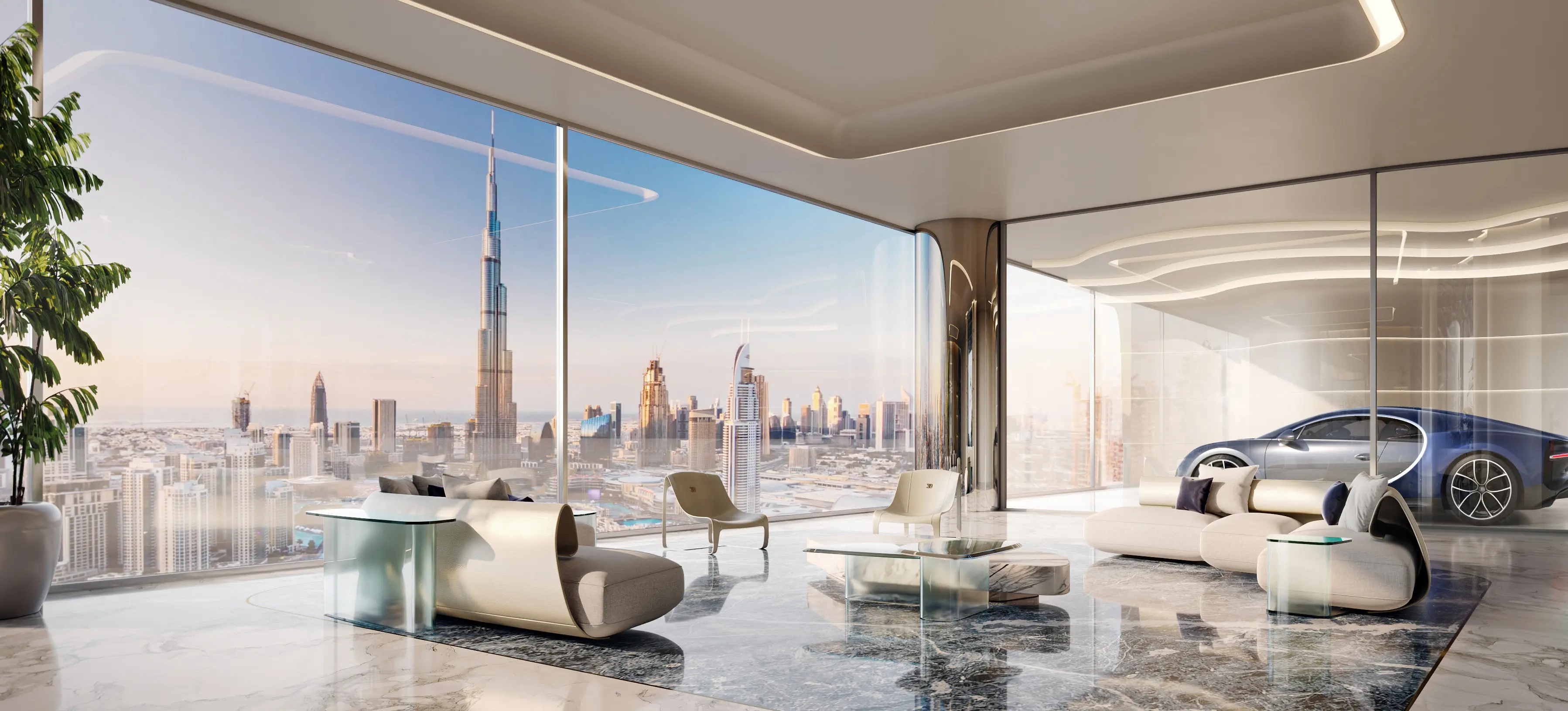 Inspired by Bugatti's hyper-luxury cars, the architecture and interiors feature fluid designs, sleek curves, and precision engineering, creating a visually stunning and sophisticated living experience. The residences range from opulent penthouses to sky mansions, with bespoke interiors, custom-made furniture, and cutting-edge technology. Selected homes come with a private car gallery, allowing residents to showcase their Bugatti or other luxury vehicles.